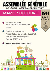 Les associations APEL et OGEC de l'école Notre Dame de Nantilly organisent leurs AG annuelles.
